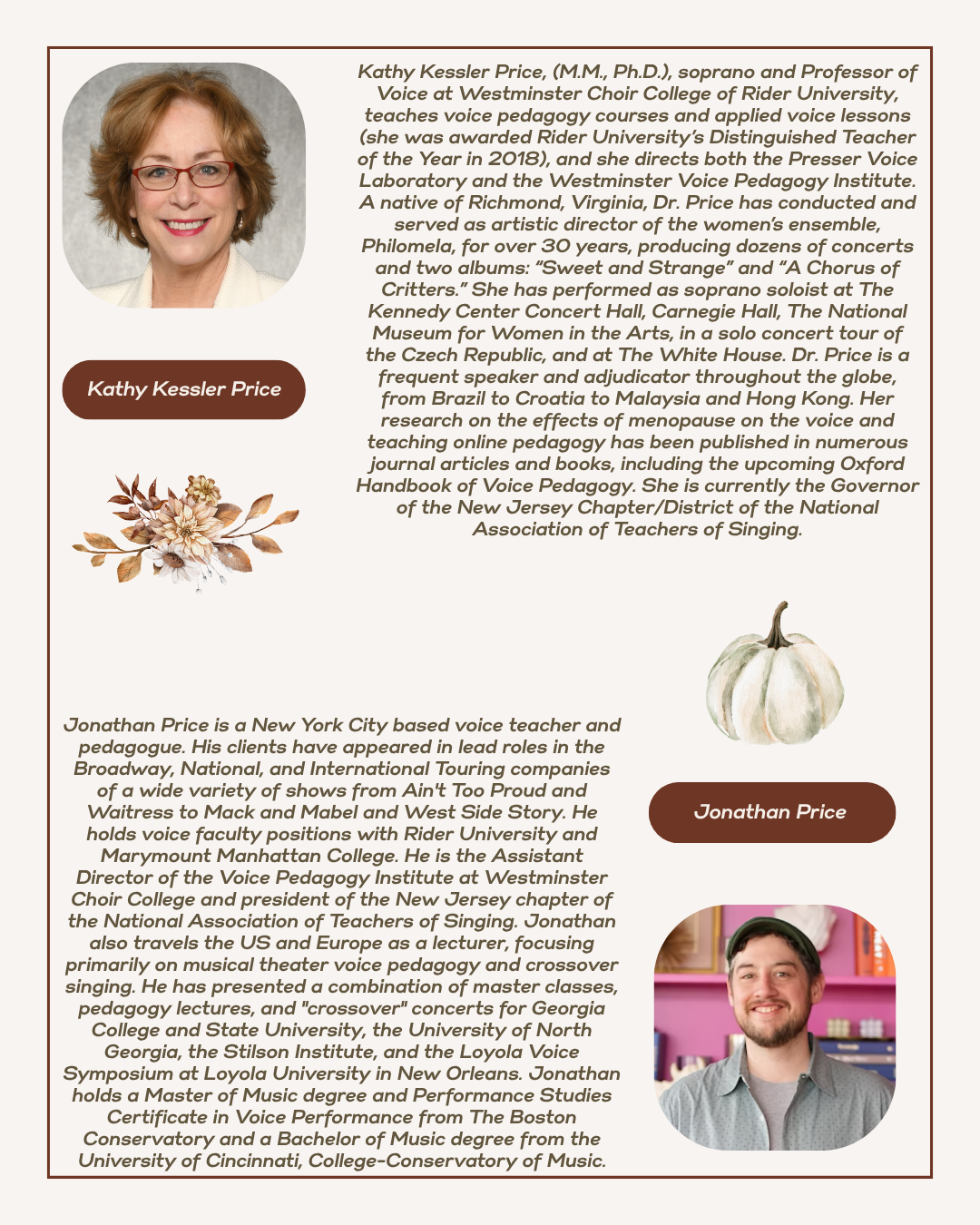 We are a professional organization of teachers of singing affiliated with the National Association of Teachers of Singing. Our mission is to encourage the highest standards of vocal art and ethical principles in the teaching of singing and to promote education and research in all related fields.